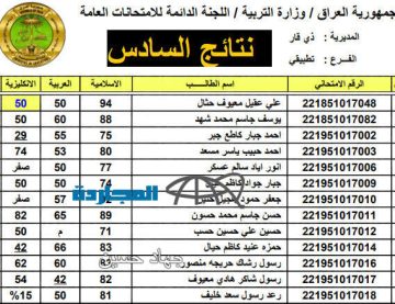 لينك تحميل pdf نتائج اعتراضات السادس الاعدادي الدور الثاني بالرقم الامتحاني لجميع المحافظات العراقية عبر موقع نتائجنا