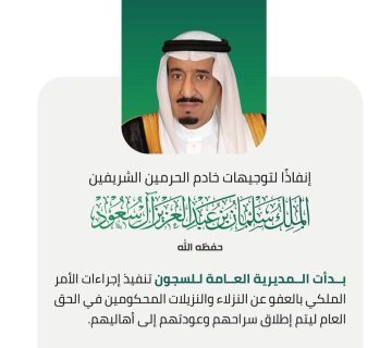 أسماء المشمولين العفو الملكي 1445 بالسعودية بعد صدوره رسميًا وتنفيذ المديرية العامة للسجون الإجراءات اللازمة