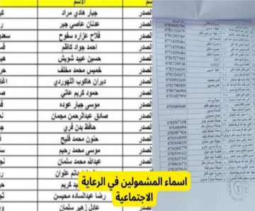 لينك أسماء المشمولين بالرعاية الاجتماعية في العراق لجميع المحافظات لدى وزارة العمل والشؤون الاجتماعية