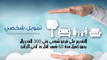 التقديم علي قرض شخصي حتي 300 ألف ريال بدون كفيل مدة 60 شهر أقل حد أدني للراتب