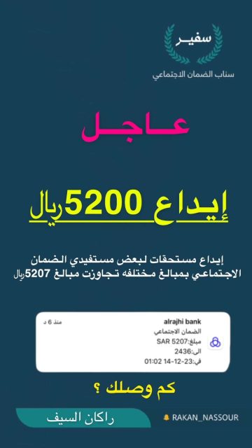الساعة كم ينزل الضمان الاجتماعي المطور في بنك الراجحي لشهر ديسمبر 1445 في حسابات المستفيدين الموارد البشرية تجيب