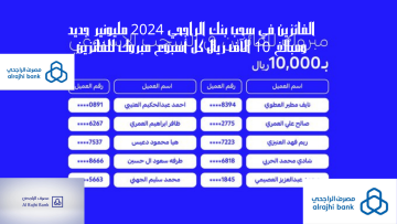 الفائزين في سحب بنك الراجحي 2024 مليونير جديد ومبالغ 10 الآف ريال كل أسبوع مبروك للفائزين