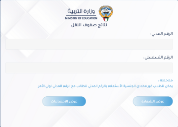 ظهرت الان رابط استخراج نتائج الطلاب بالرقم المدني الكويت موقع وزارة التربية رابط results.moe.edu.kw نتائج صفوف النقل (المدارس التي رفعت النتائج)