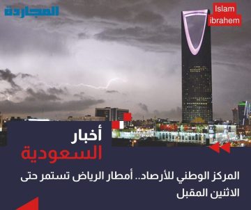 “المركز الوطني للأرصاد”.. أمطار الرياض تستمر حتى الاثنين المُقبل.. وسوف تكون من متوسطة إلى غزيرة بتِلك الأجزاء