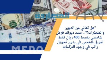“هل تعاني من الديون والمتعثرات؟”.. سدد ديونك قرض شخصي بقسط 400 ريال فقط تمويل شخصي في بدون تحويل راتب في وجود التزامات