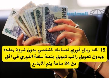 15 الف ريال فوري لحسابك الشخصي بدون شروط معقدة وبدون تحويل راتب تمويل منصة سلفة الفوري في اقل من 24 ساعة يتم الايداع