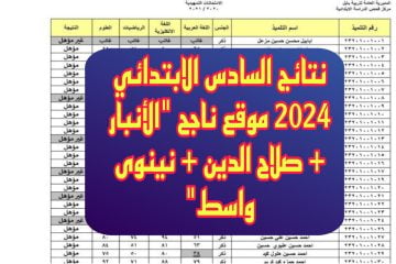 وزارة التربية: نتائج السادس الابتدائي 2024 موقع ناجح “الأنبار + صلاح الدين + نينوى واسط” بالرقـــم والاسم pdf