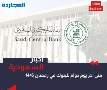 متى آخر يوم دوام للبنوك في رمضان 1445 في السعودية قبل موعد العيد الفطر 2024.. “المركزي السعودي” يُجيب