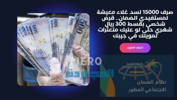 إيداع فوري 15000 لسد الغلاء لمستفيدي الضمان.. قرض شخصي بقسط 300 ريال شهري حتى لو عليك متعثرات تمويلك في جيبك