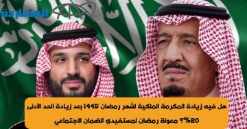 هل فيه زيادة المكرمة الملكية لشهر رمضان 1445 بعد رفع الحد الأدنى 20%؟ معونة رمضان لمستفيدي الضمان الاجتماعي