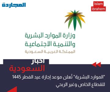 الموارد البشرية: تُعلن موعد إجازة عيد الفطر 1445 للقطاع الخاص وغير الربحي.. وتستمر العُطلة 4 أيام
