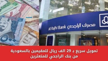 تمويل سريع بـ 29 الف ريال للمقيمين بالسعودية من بنك الراجحي للمتعثرين بقسط 484 ريال شهريا